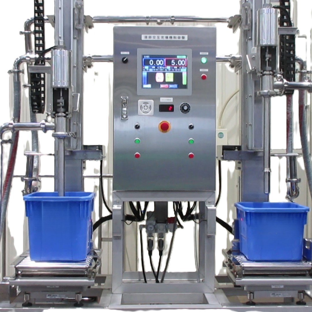 液卵交互充填機の最大の特徴は、1本の供給ラインで2台の充填計量機を交互に制御できることです。