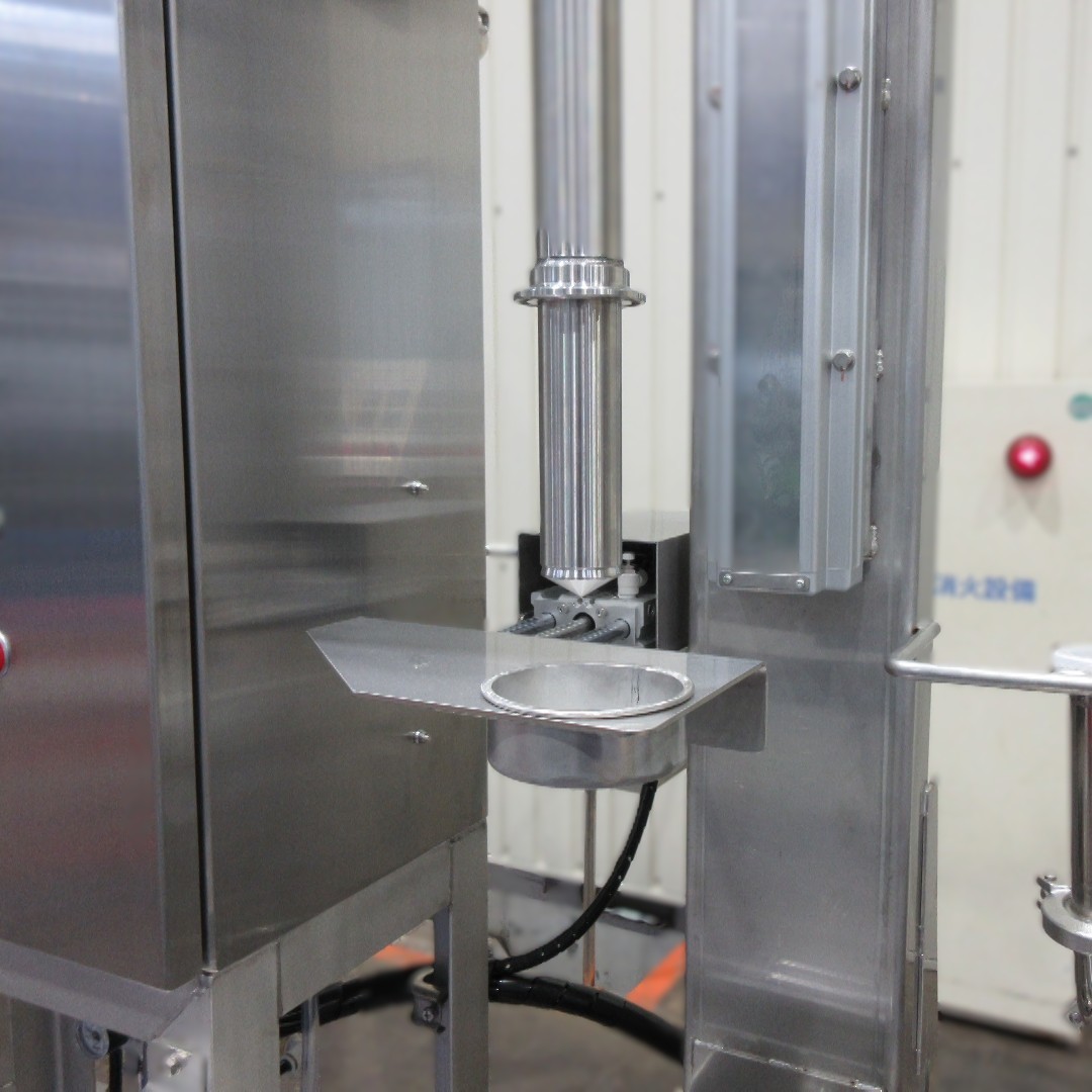 さらに、充填終了と同時にノズル下に自動で受け皿がスライドイン。