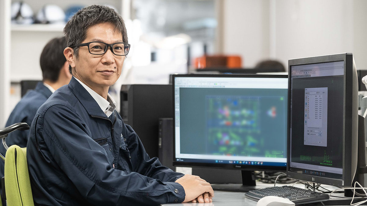 営業がお客様からヒアリングしてきたことを、たとえば設備はどういったものがよく、どんな機械を使うとお客様の問題が解決されて、そしてそれを収めるレイアウトはこうしたらいいのではないか、などを考えて図面を描きます。